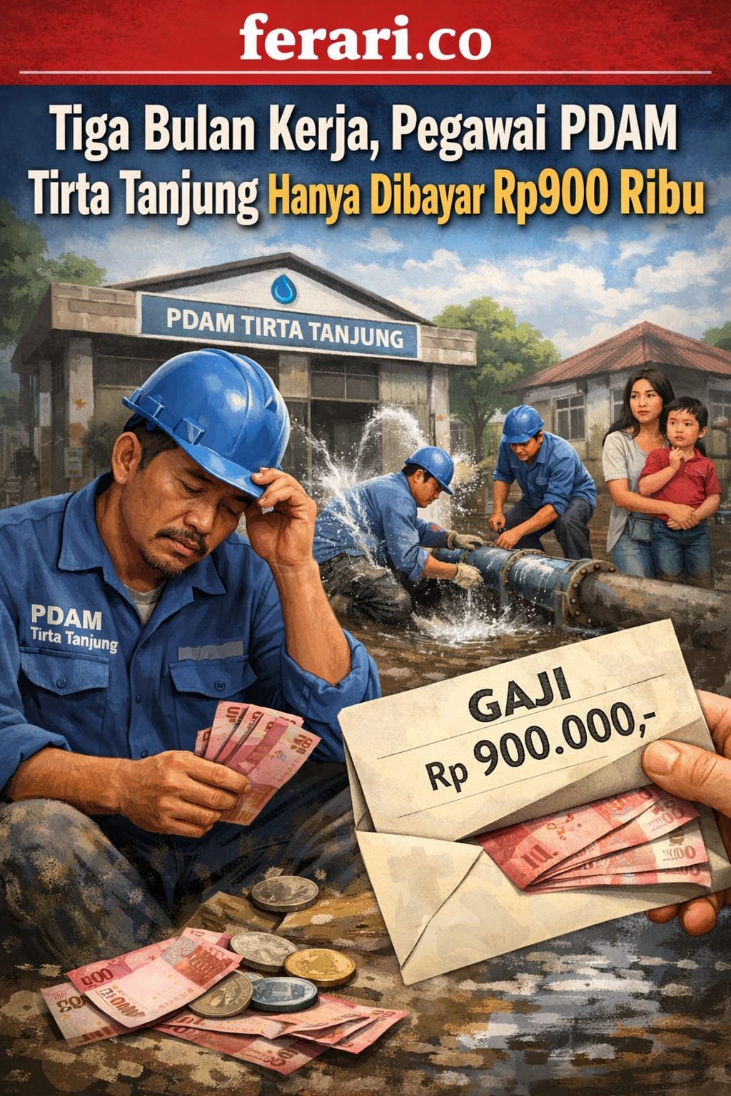 Hingga kini, pegawai PDAM Tirta Tanjung hanya menerima gaji pokok bulan November, dengan nominal sekitar Rp900 ribu per orang. Tidak ada kejelasan kapan sisa gaji akan dibayarkan.