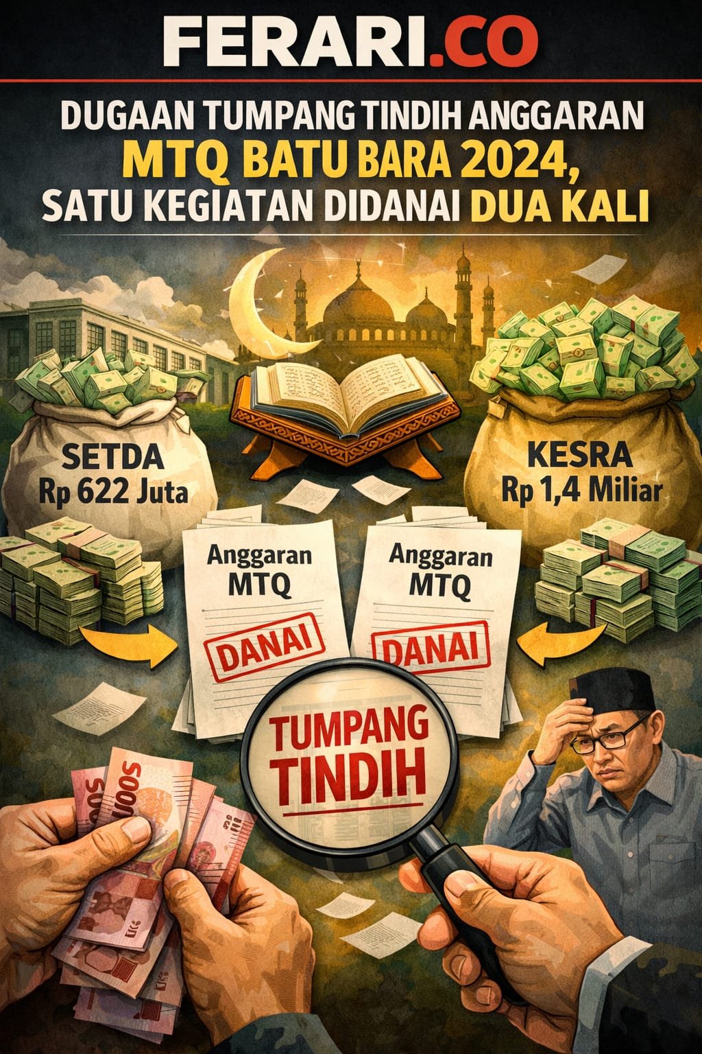 Batu Bara – Ferari.co | Dugaan tumpang tindih sekaligus potensi penyimpangan anggaran Penyelenggaraan Musabaqah Tilawatil Qur’an (MTQ) Ke-XVII Kabupaten Batu Bara Tahun Anggaran 2024 semakin menguat. Sorotan kini mengarah ke Sekretariat Daerah (Setda) Kabupaten Batu Bara yang diduga mengelola anggaran ratusan juta rupiah untuk kegiatan yang sama.
