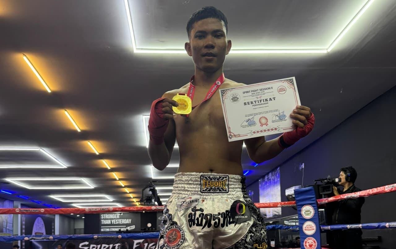 Medan – Ferari.co | Petinju muda asal Kabupaten Batu Bara, Mikael Vaniroy Butar-Butar (17), berhasil meraih kemenangan Technical Knock Out (TKO) pada ronde kedua dalam pertandingan kelas 65 kilogram pada ajang Spirit Fight Season 2 dengan rules kick boxing yang digelar di Kota Medan, Sabtu (7/2/2026).