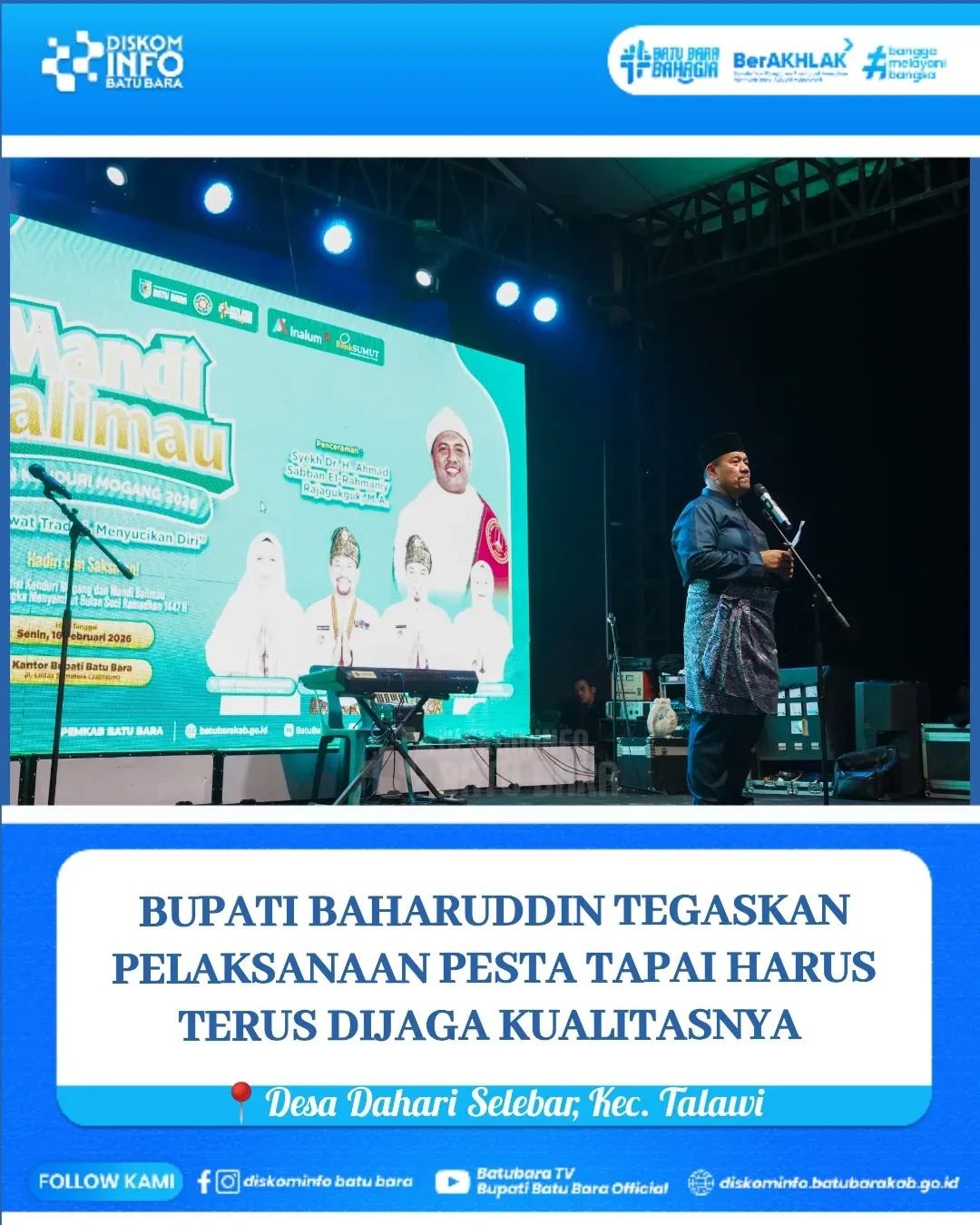 Dalam sambutannya, Bupati Batu Bara menyampaikan apresiasi kepada seluruh panitia, pelaku UMKM, tokoh masyarakat, serta berbagai pihak yang telah berkontribusi menyukseskan kegiatan budaya tahunan tersebut.