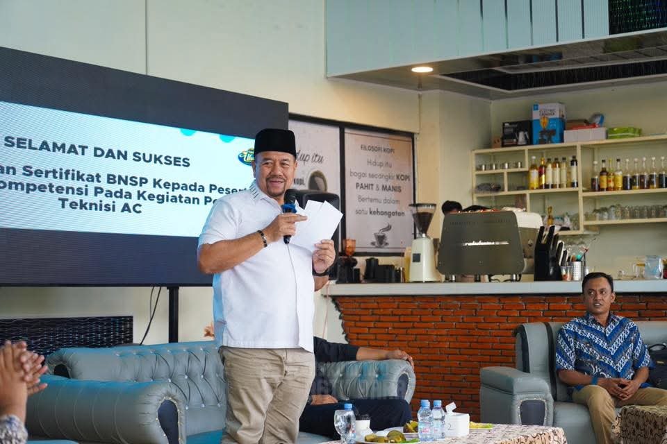 Batu Bara – Ferari.co | Bupati Batu Bara H. Baharuddin Siagian, S.H., M.Si.menyerahkan sertifikat kompetensi dari Badan Nasional Sertifikasi Profesi (BNSP) kepada peserta yang lulus uji kompetensi pada pelatihan Teknisi AC Residential. Penyerahan sertifikat berlangsung di Aula Cafe Ulung Coffee & Lounge, Jalinsum Sipare-Pare, Kecamatan Air Putih, Jumat (6/2/2026).